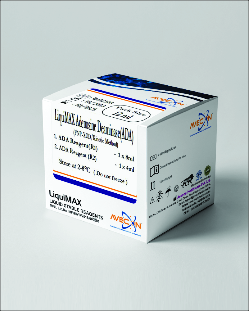 Kit is use for the quantitative determination of ADA activity in human Serum, Plasma, Pleural, Pericardial, Peritoneal and CSF.